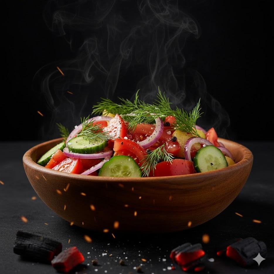 Бамбическое блюдо ,баклажаны, кабачки, перец,морковь, грибы шампиньоны, лук, заправлено фирменным соусом, Очень вкусно!
